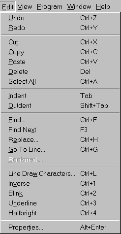 The Edit menu provides access to edit functions.